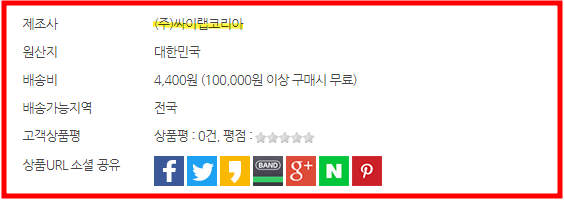 내용 : 상품 상세페이지 내에 확인되는 제조사가 (주)싸이랩코리아인 경우